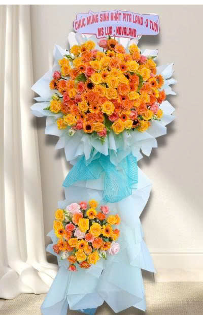 Kệ Hoa Khai Trương Phát Tài Như Ý-DTK02 được thiết kế tỉ mỉ, kết hợp hài hòa giữa các loại hoa tươi thắm, mang ý nghĩa tốt lành. Màu sắc tươi sáng, rực rỡ của hoa không chỉ làm đẹp không gian mà còn mang đến nguồn năng lượng tích cực cho ngày khai trương.