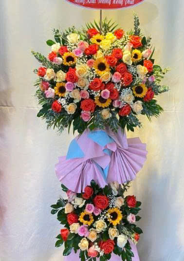 Kệ hoa được tạo nên từ sự kết hợp hài hòa của nhiều loại hoa tươi khác nhau, mỗi loại hoa mang một ý nghĩa riêng, góp phần tạo nên một thông điệp chúc mừng trọn vẹn. Hoa hướng dương tượng trưng cho sự thành công và may mắn, hoa đồng tiền tượng trưng cho sự giàu có và thịnh vượng, hoa lan tượng trưng cho sự sang trọng và quý phái. Ngoài ra, những bó hoa đẹp cũng góp phần làm cho ngày khai trương thêm phần rực rỡ.